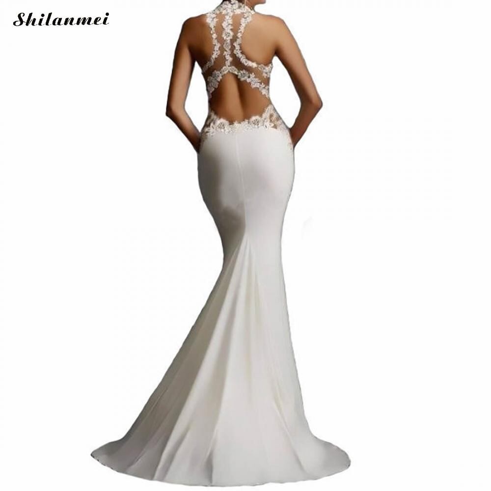 エレガントなblakホワイトロングパーティードレスvestidosマーメイドマキシembroideriedレースドレスセクシーな背中の開いたオフショルダーホルタークラブ着用