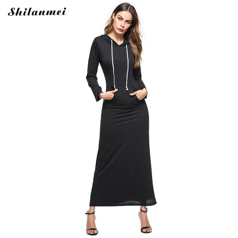 2018 秋冬レディースロングパーカードレスファッション長袖プルオーバービッグポケットカジュアルマキシシャツスウェットシャツフード付きドレス