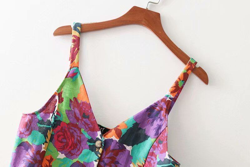 ヨーロッパ新しいスタイル2018女性のファッションフローラルプリントショートキャミソール、セクシーなカジュアルリネンキャミソールエレガントスリムカラートップス