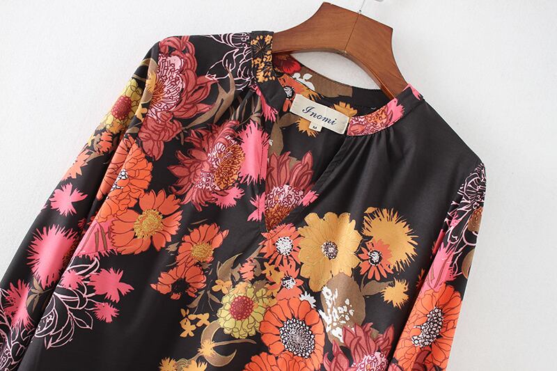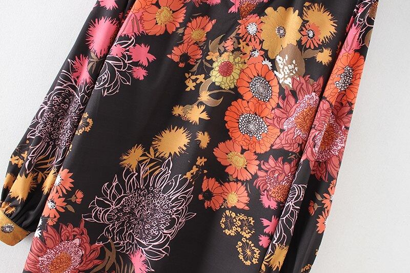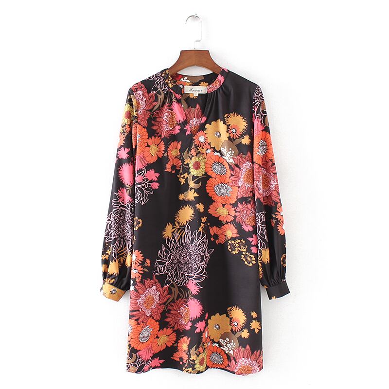 2018春新しい到着の女性ヴィンテージ花柄ドレス、女性エレガントカジュアルvネックドレスで長い袖