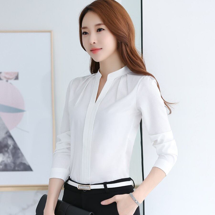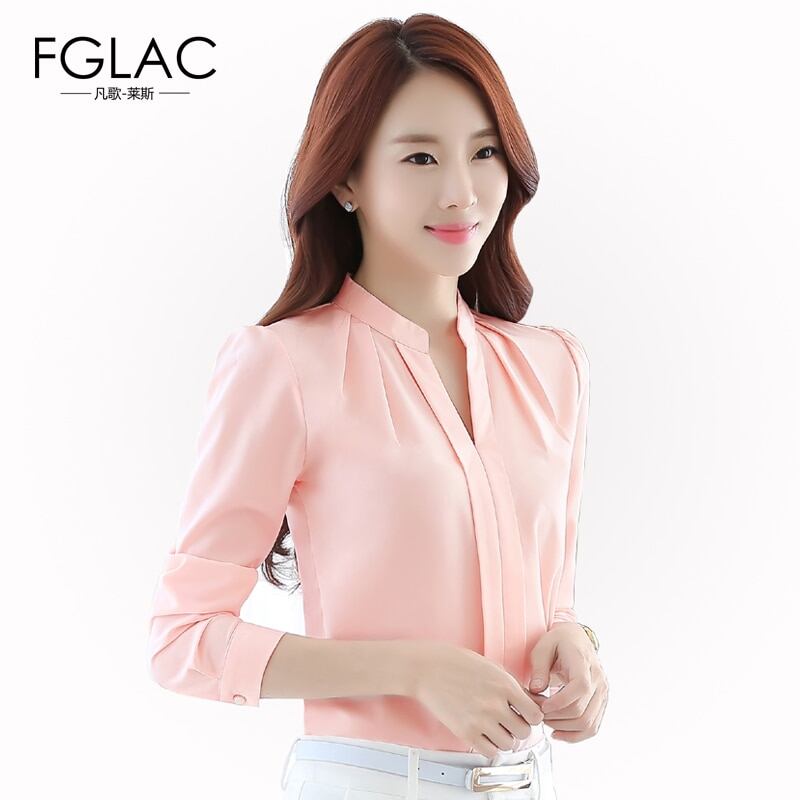 新しい2017春女性シフォンブラウスファッションカジュアル長袖女性シャツ無地エレガントスリムシフォン女性トップス