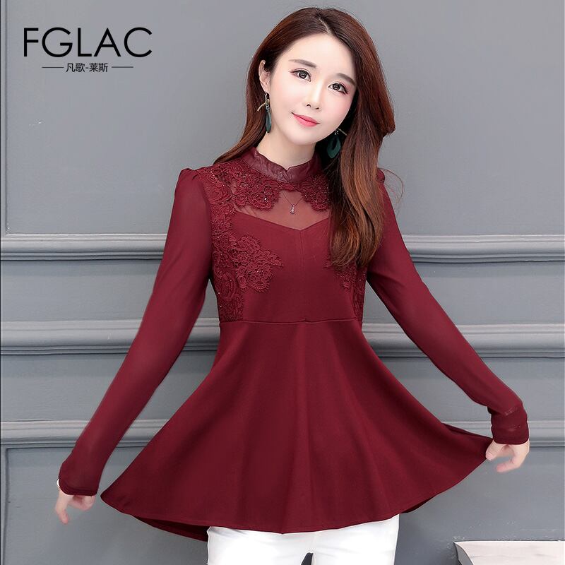 FGLAC 女性ブラウスシャツ新ファッションカジュアル長袖 PU パッチワークメッシュトップスプラスサイズ 4XL 秋冬の女性の服
