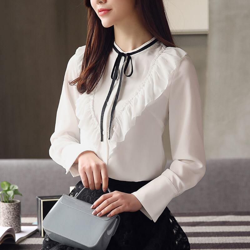Fglac女性シャツ新着2018春長袖シフォンシャツエレガントなスリム白いブラウスオフィスレディ女性トップス