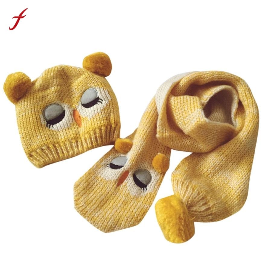 新たにファッションベビー帽子とスカーフセット赤ちゃん男の子女の子幼児子供フクロウ冬のスカーフと帽子セットボンネットecharpeランファンa1530