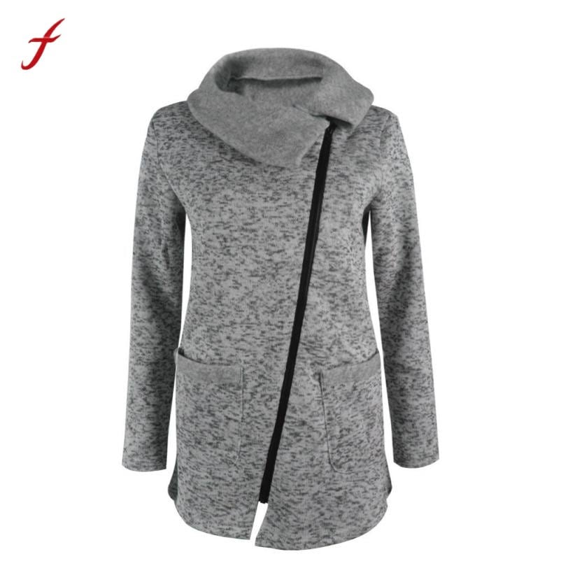Feitongファッショングレーコート女性生き抜くカジュアルフード付きコートロングジッパー冬生き抜く女性暖かいトップスa2040