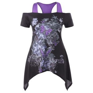 プラスサイズの層状コール女性 Tシャツ蝶半袖夏のカジュアル Tシャツ