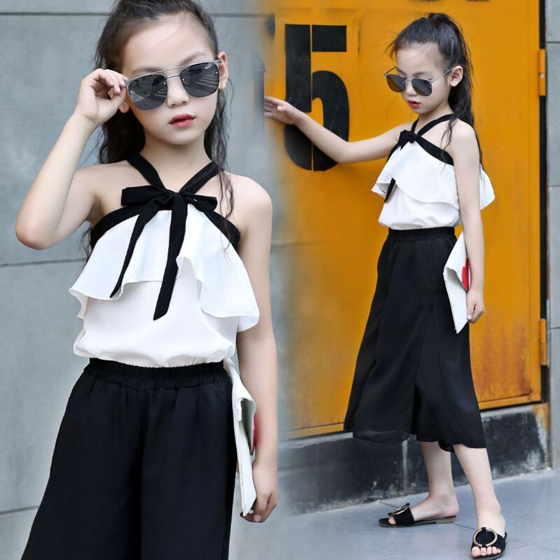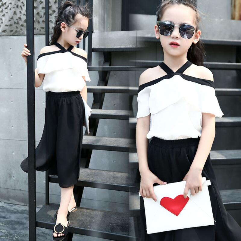 3-12yrs新しいファッション夏子供女の子服セット子供赤ちゃん女の子服セット弓オフショルダーシャツ+パンツ2ピースセットJW2339