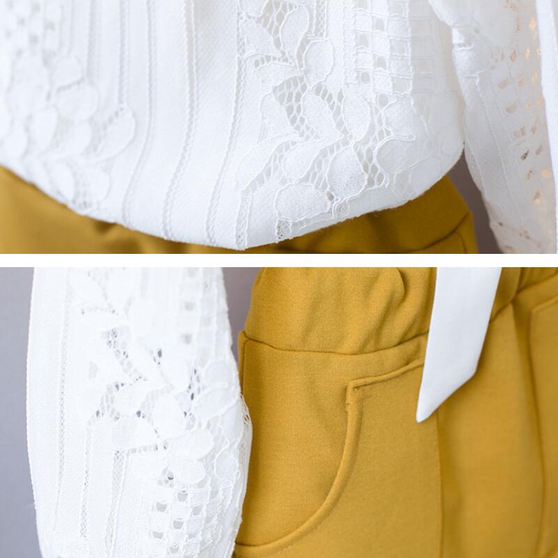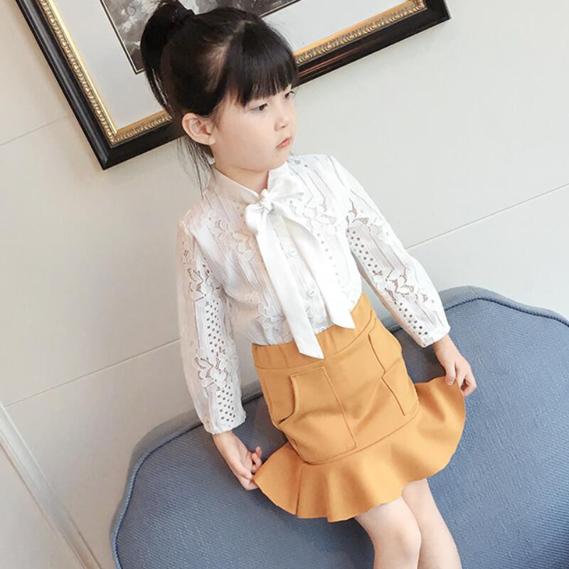 春の秋服セット女の子ベビー幼児子供服ロングスリーブレースホワイト弓ブラウストップス+スカート女の子服セットJW3086