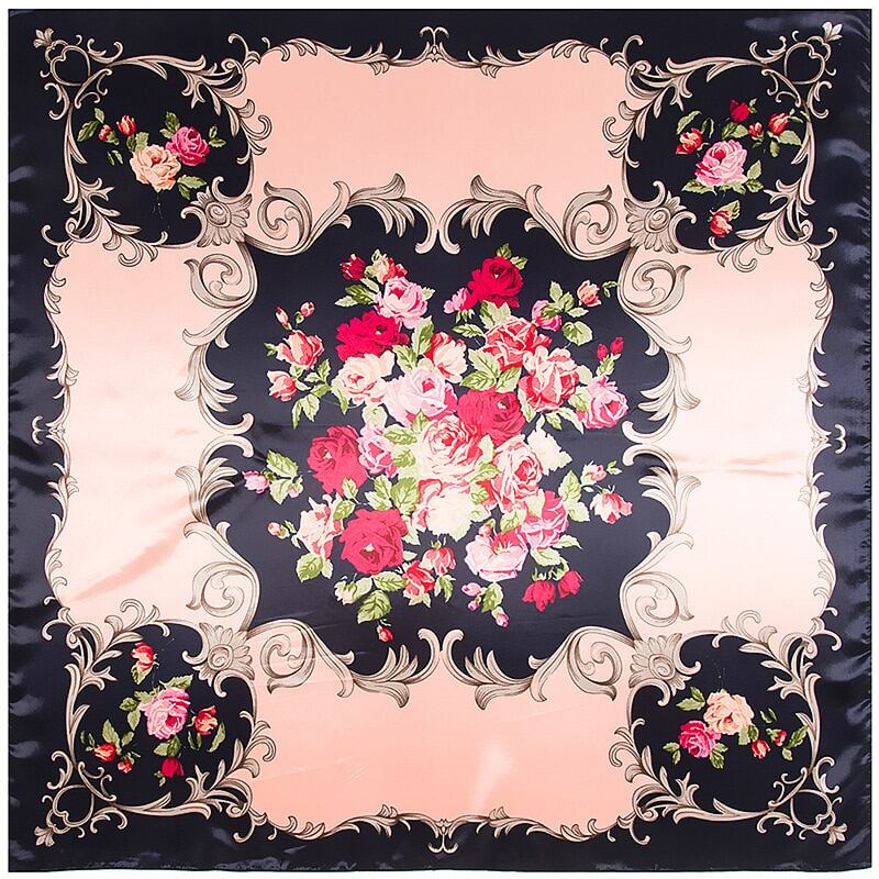 2018新しい90*90センチ春夏ビーチ女性100%ツイルシルクスカーフ印刷スクエアシルクスカーフ女性王室ローズショール