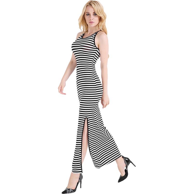 縞模様のストラップセクシーなドレスoネックノースリーブ足首の長さオープンフォーク非対称女性カジュアル2018パーティークラブ熱い夏5719