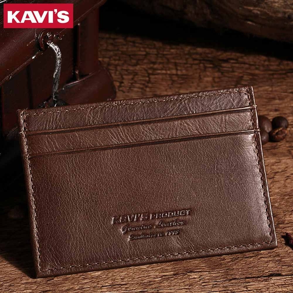 Kavis牛レザークレジットカード財布コーヒー色男性クレジットidカードホルダー小さな財布コイン財布スリム薄い男性ミニwalet