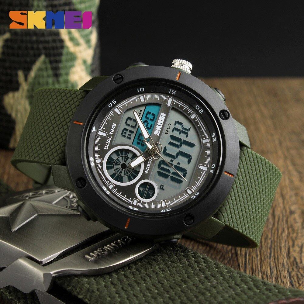 SKMEI 男性スポーツ腕時計 El ライトダブル時間時計アラームクロノデジタル腕時計 50 メートル防水レロジオ Masculino 1361