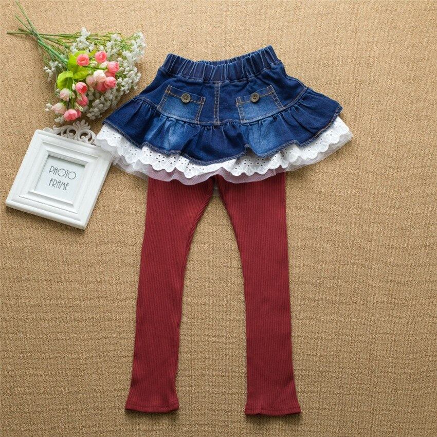 3-8 y子供レギンス女の子フリルパンツデニムスカートレースレギンス用女の子服セールスオン女の子春秋のズボン