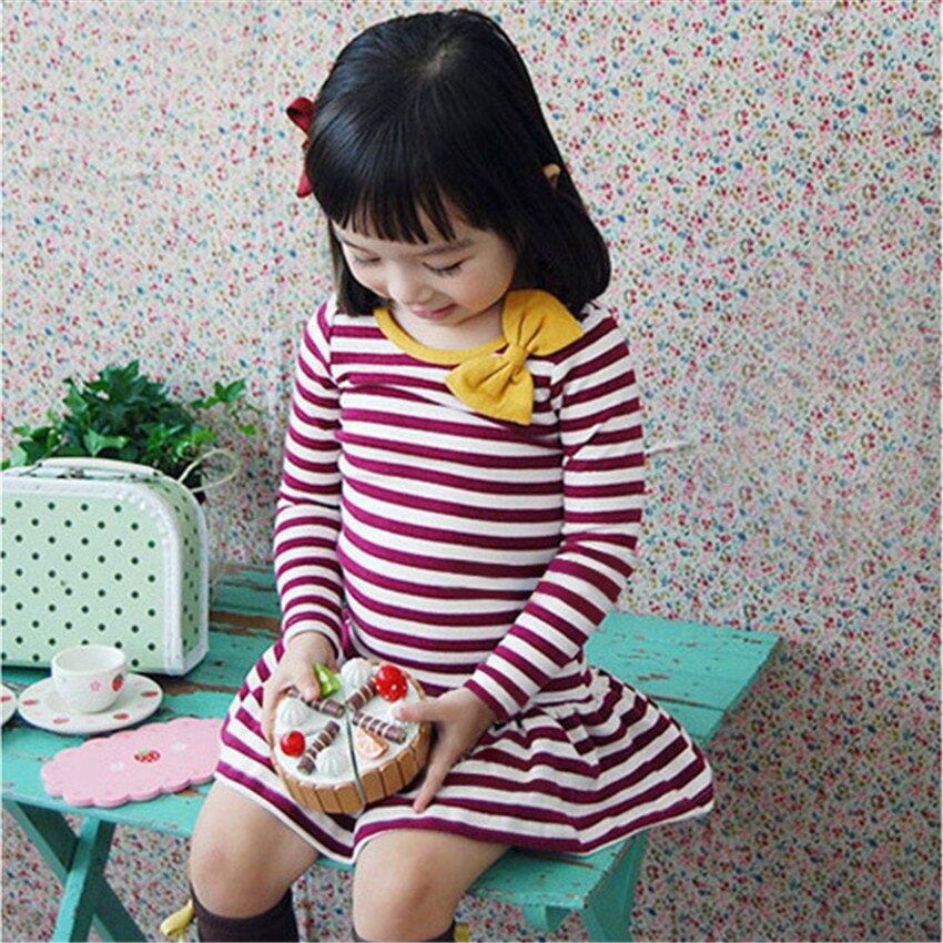 3-8 y子供女の子ドレス長袖ストライプドレス女の子服弓フリルドレスセールスオンプリンセスドレス用女の子