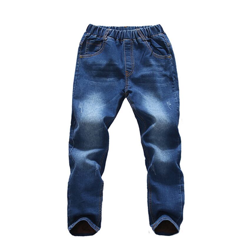 3-10 y 冬ためのジーンズデニムパンツ服少年暖かいジーンズ子供弾性ズボン 10 歳カジュアルパンツ