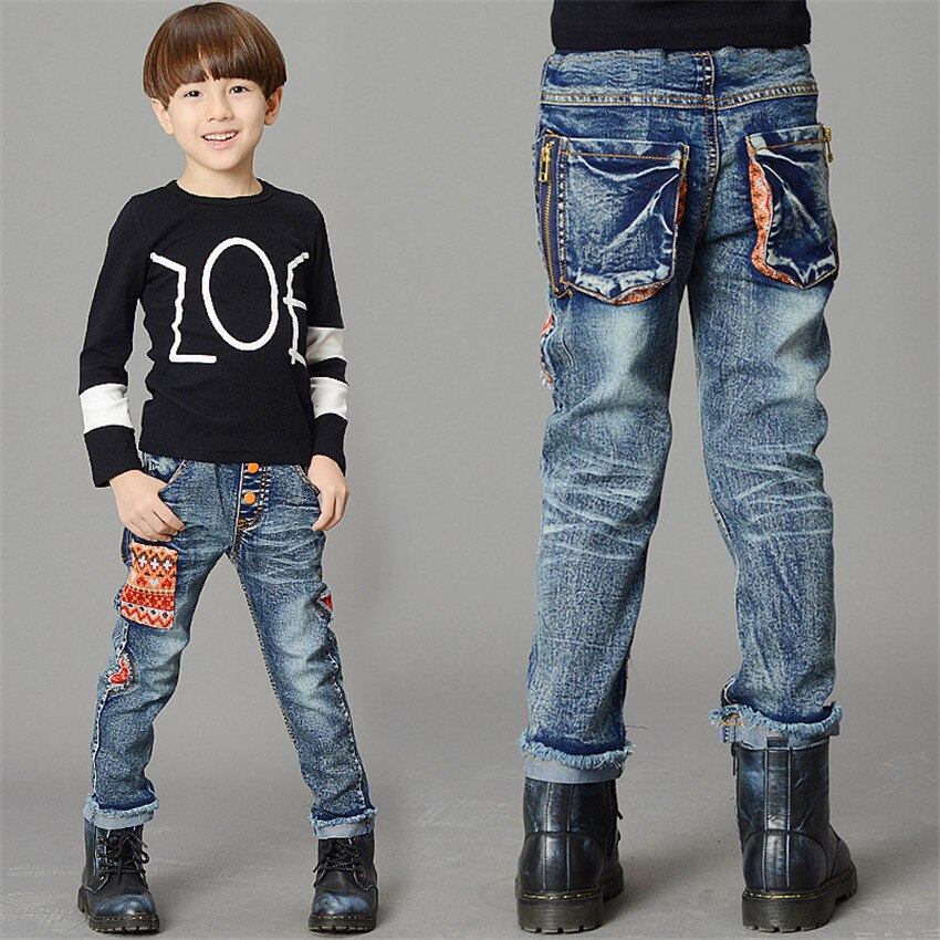 3-10 y ボーイズジーンズパンツ春の秋のズボン子供少年デニムパンツ弾性ジーンズボーイズ服パッチ 10 歳