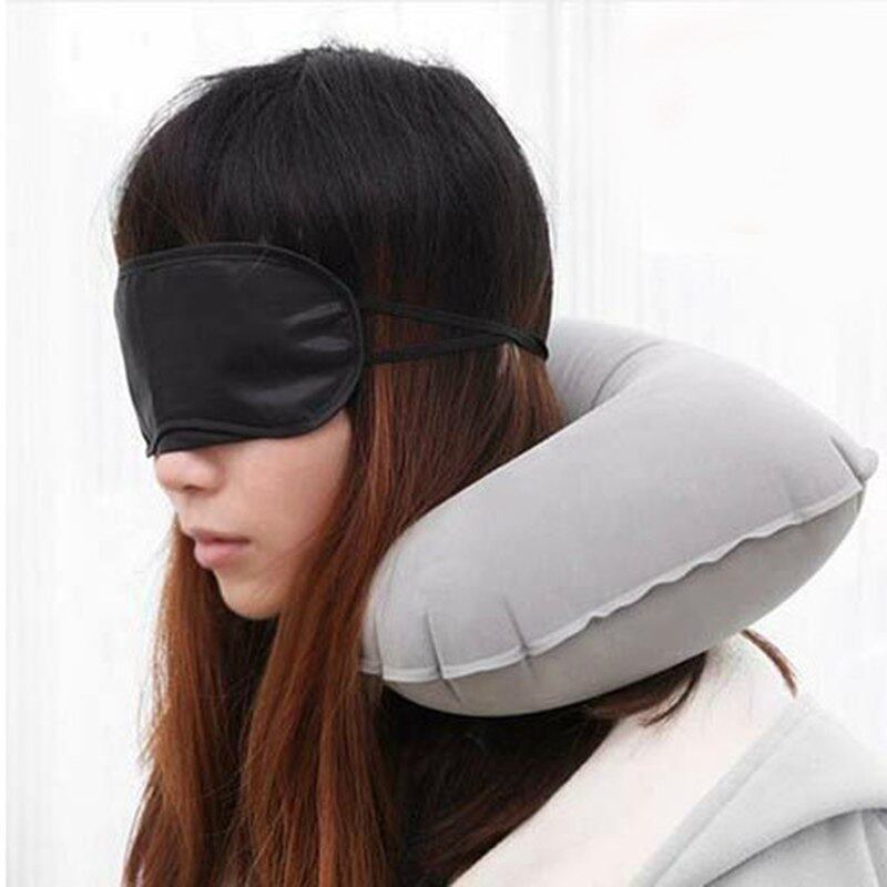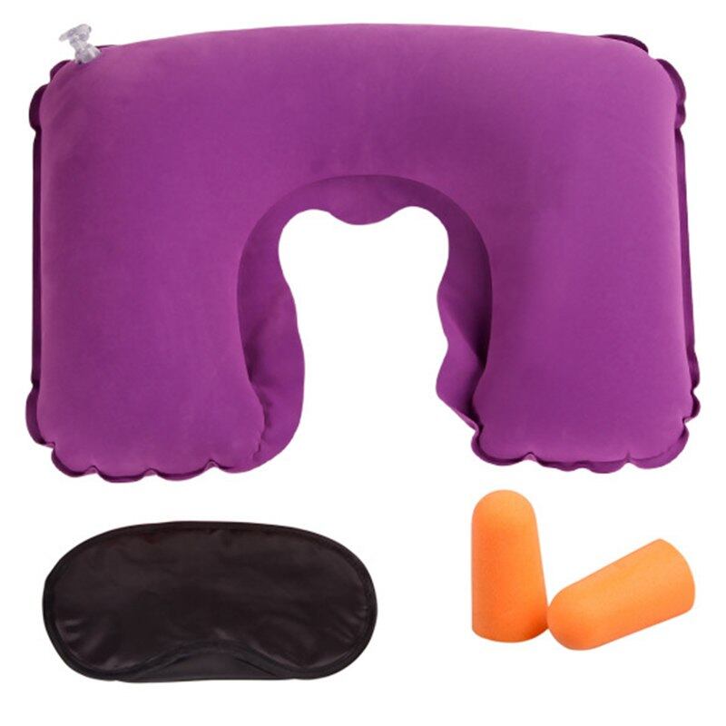 3ピーススーツポータブルインフレータブル旅行u字型枕群がっインフレータブルネックエアクッション枕アイシェードで耳プラグギフト