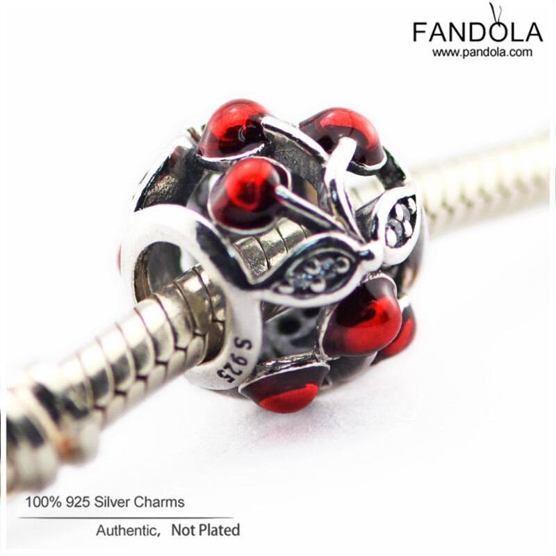 フルーツビーズ925スターリングシルバー甘いチェリー透かしチャームビーズジュエリーメイキングのためにパンドラチャームブレスレットberloque