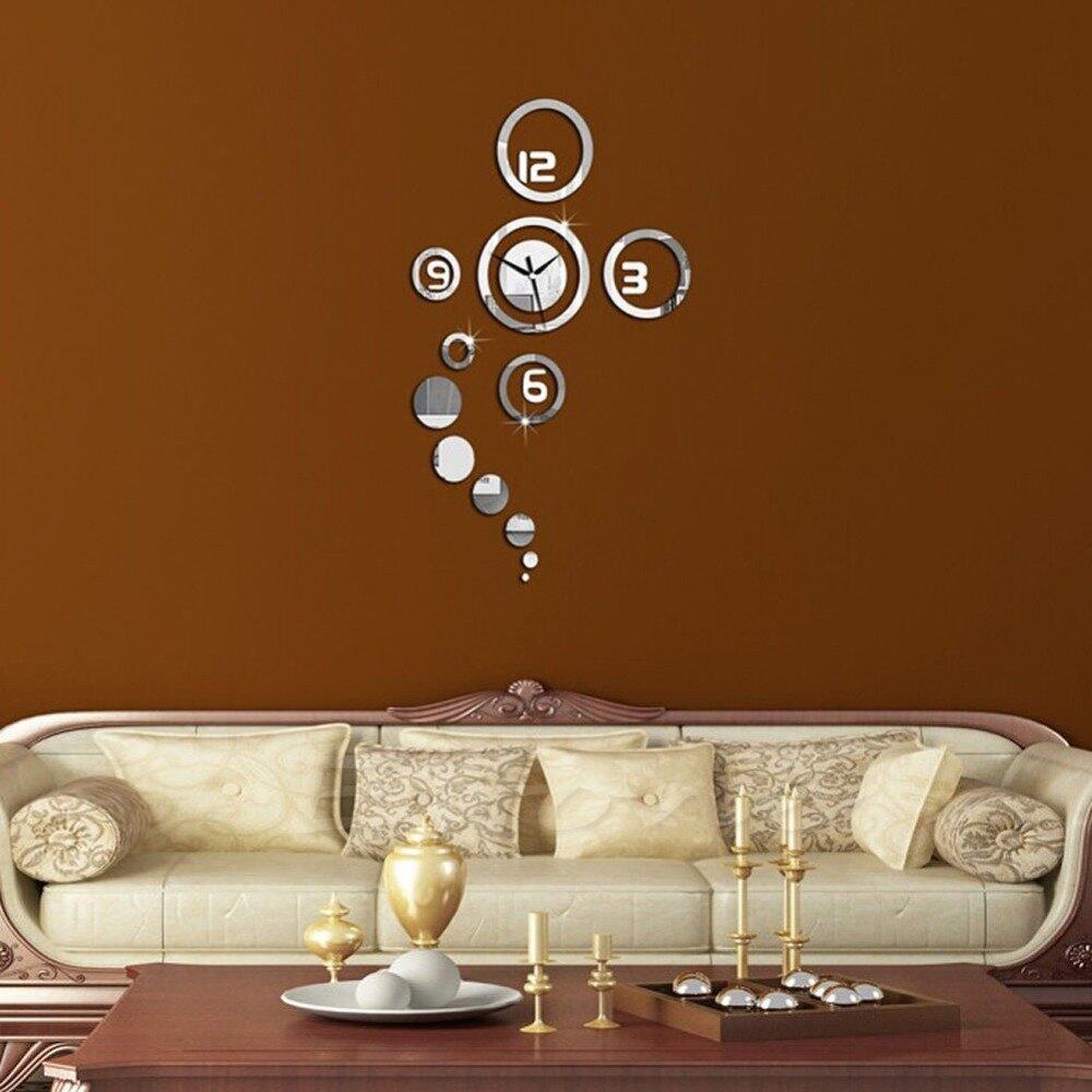 ミラーファッションdiyアクリル3dウォールクロックリムーバブルデカールビニールアートステッカーリビングルーム家の装飾