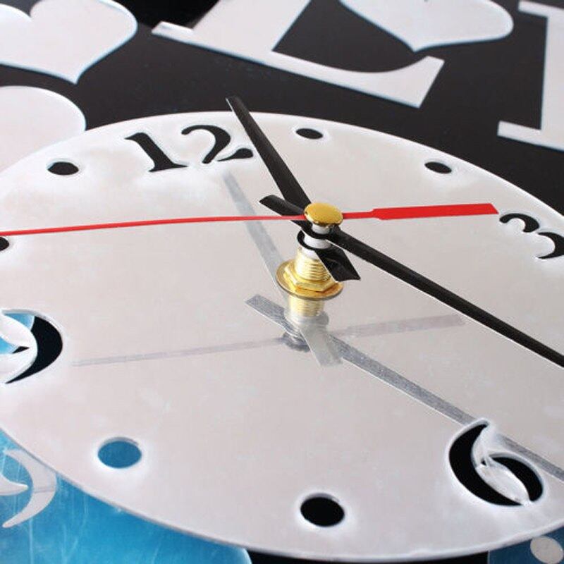 新しい3dクリスタルミラーアクリル愛壁時計現代のファッションdiyリビングルーム装飾で自己粘着のり