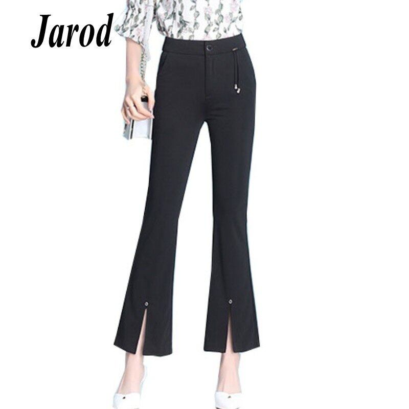 2018春女性の分割フレアパンツエレガントなスリムハイウエストスーツパンツオフィスカジュアル女性パンツズボンプラスサイズs-6xl
