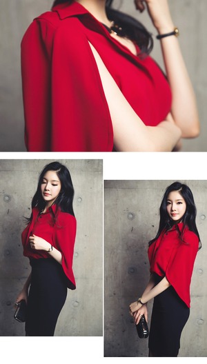 2 ピースセット女性スーツ夏オフィス赤マントシフォンブラウスシャツトップス + 黒鉛筆ミニスカートセット