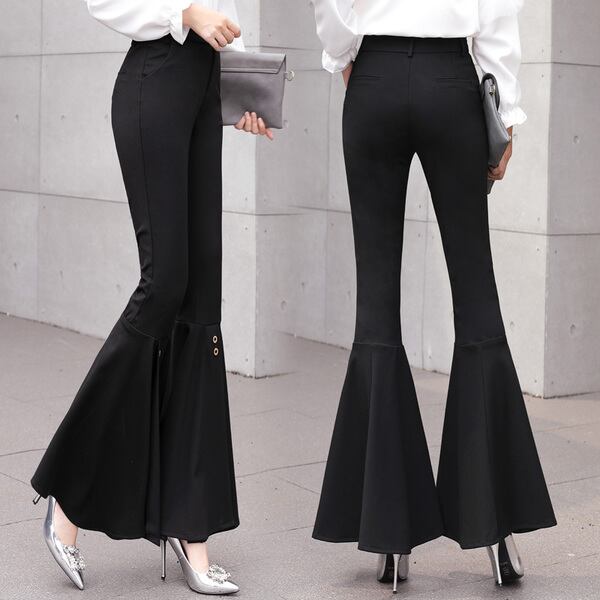 2018 春秋の新女性エレガントな Ol ハイウエストソリッドカラーパンツ薄型ストレートオフィスフレアパンツ