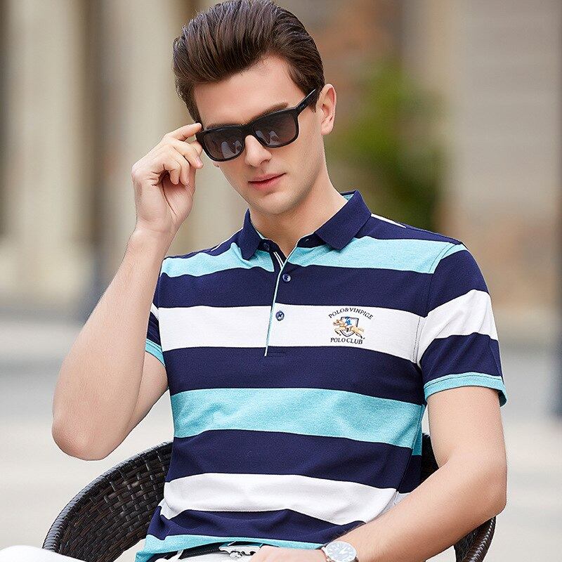 新しい到着2018夏メンズ純粋な綿のストライプポロシャツ半袖メンズカジュアルトップスtシャツ衣類vestidos 8513