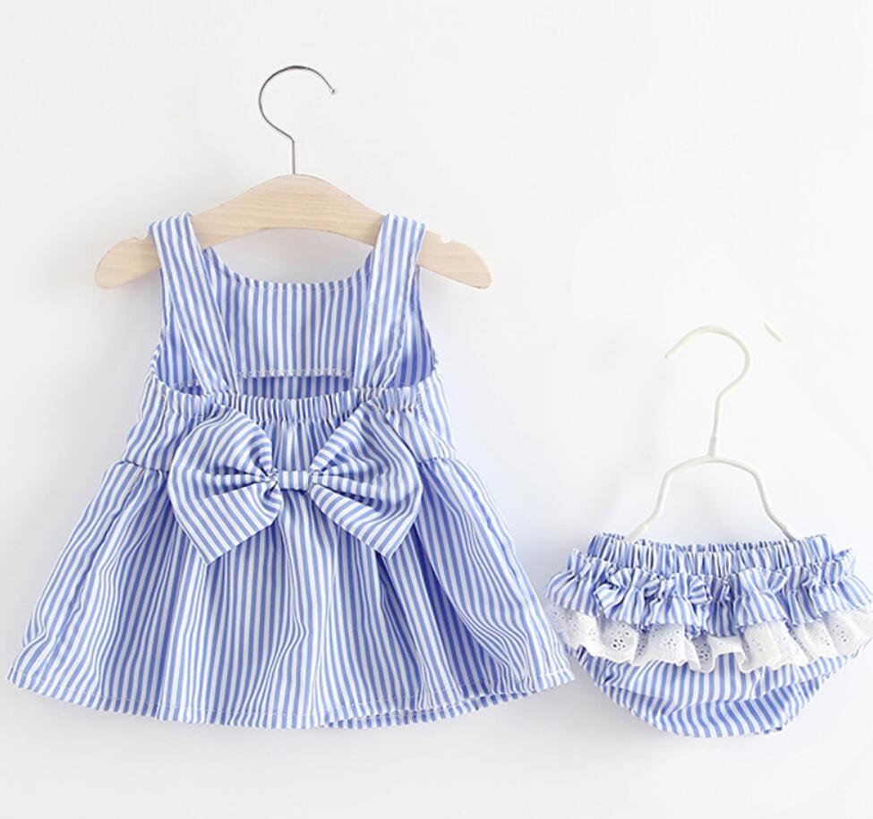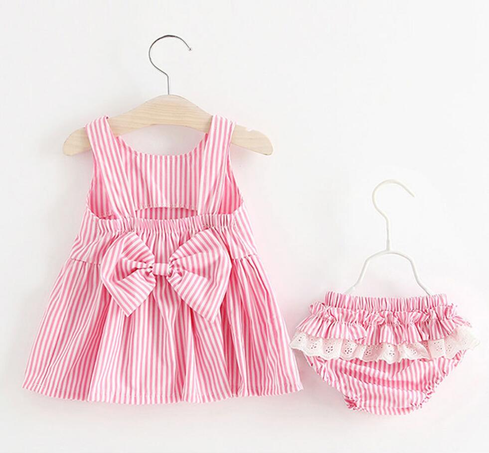 2018新しい赤ちゃんの女の子服夏サンスーツ背中の開いたプリンセスドレス+パンツ簡単なセット幼児服幼児女の子服