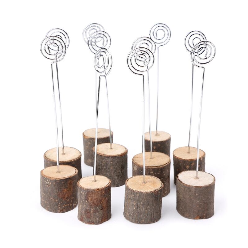 10/16 ピースウェディングの装飾フォトカードメモクリップホルダーとワイヤー用のウッドベーステーブルの結婚式の婚約