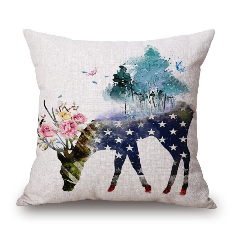 鹿花クッションカバー水彩花林木スター枕厚いリネンコットン枕カバー寝室のインテリア