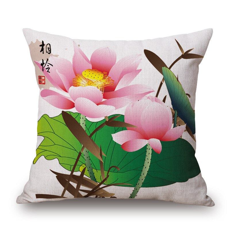 蓮の花クッションカバー14スタイル中国文化水彩花ベージュ枕カバー薄いリネンコットン寝室ソファインテリア
