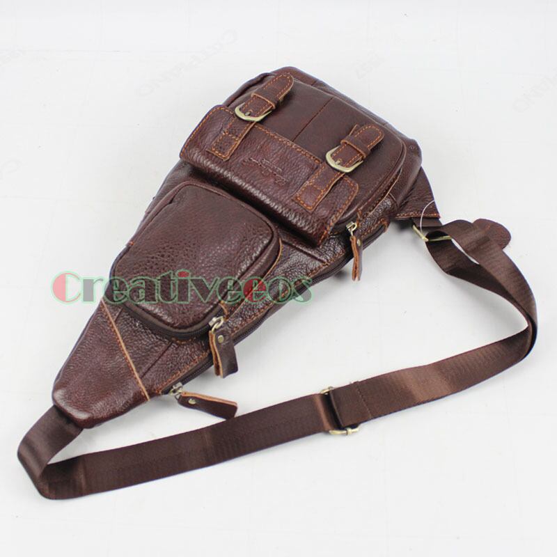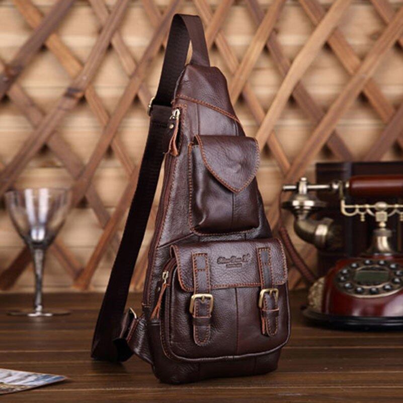 メンズ本革ヴィンテージベルトバックルショルダーメッセンジャーアンバランススリングチェストバッグ