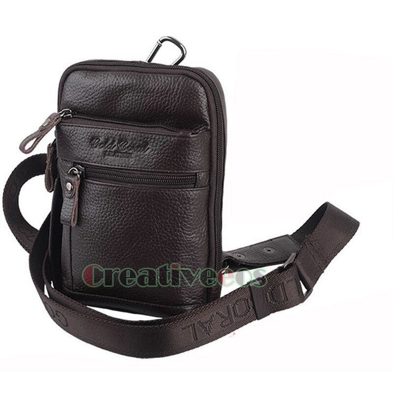 男性ヴィンテージ本革牛革旅行携帯電話のメッセンジャーショルダーベルトファニーパックウエストフックスリング胸バッグ