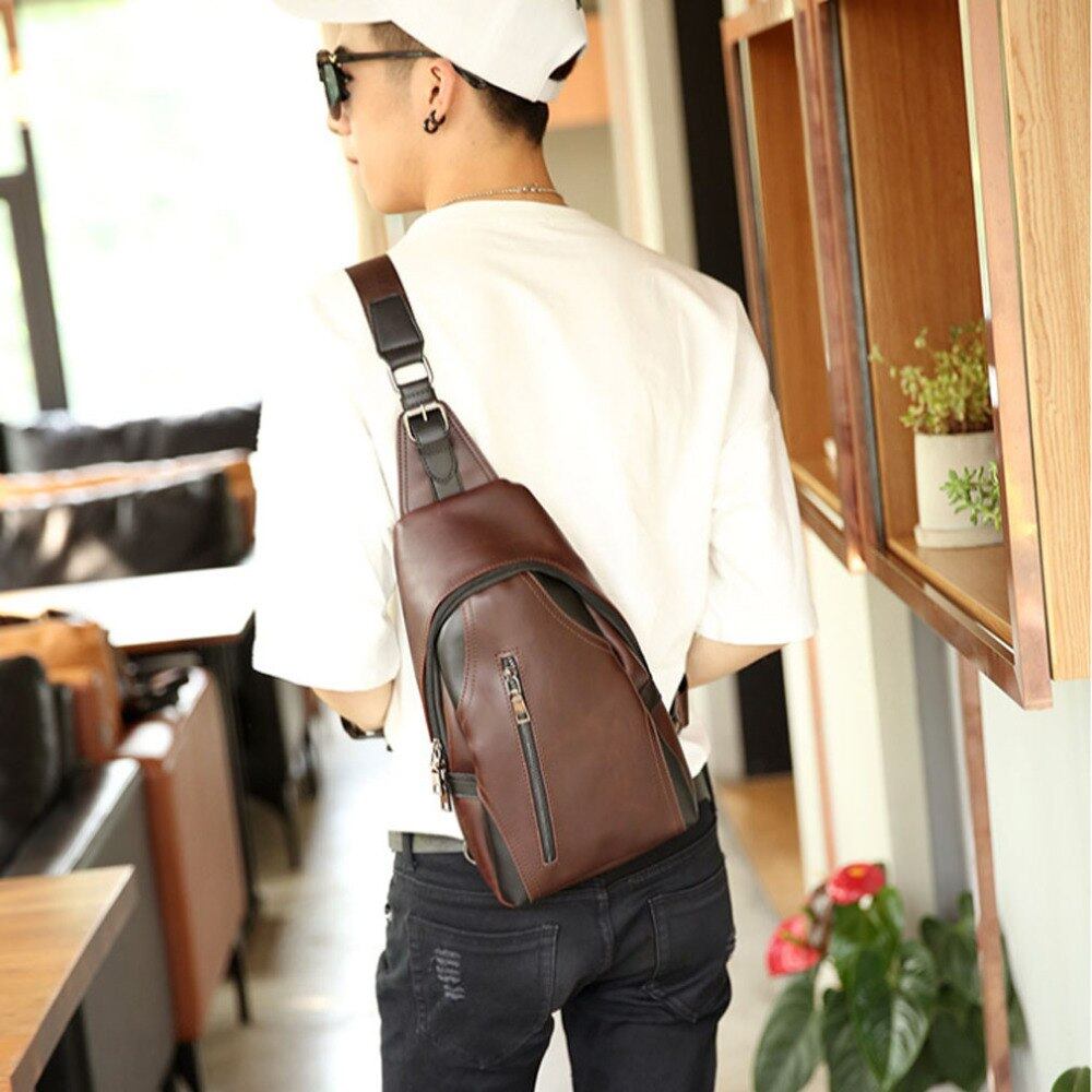 2018 男性の高品質 pu スキンスリング胸バッグレジャー旅行クロスボディショルダーバッグメッセンジャーパック