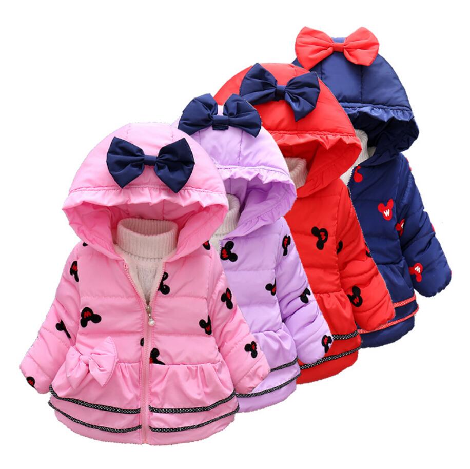 新しい漫画ミニーのコート女の子冬暖かいコート綿パッド入りのジャケット子供アウターガールフード付きベビー服 Warmwear トップ