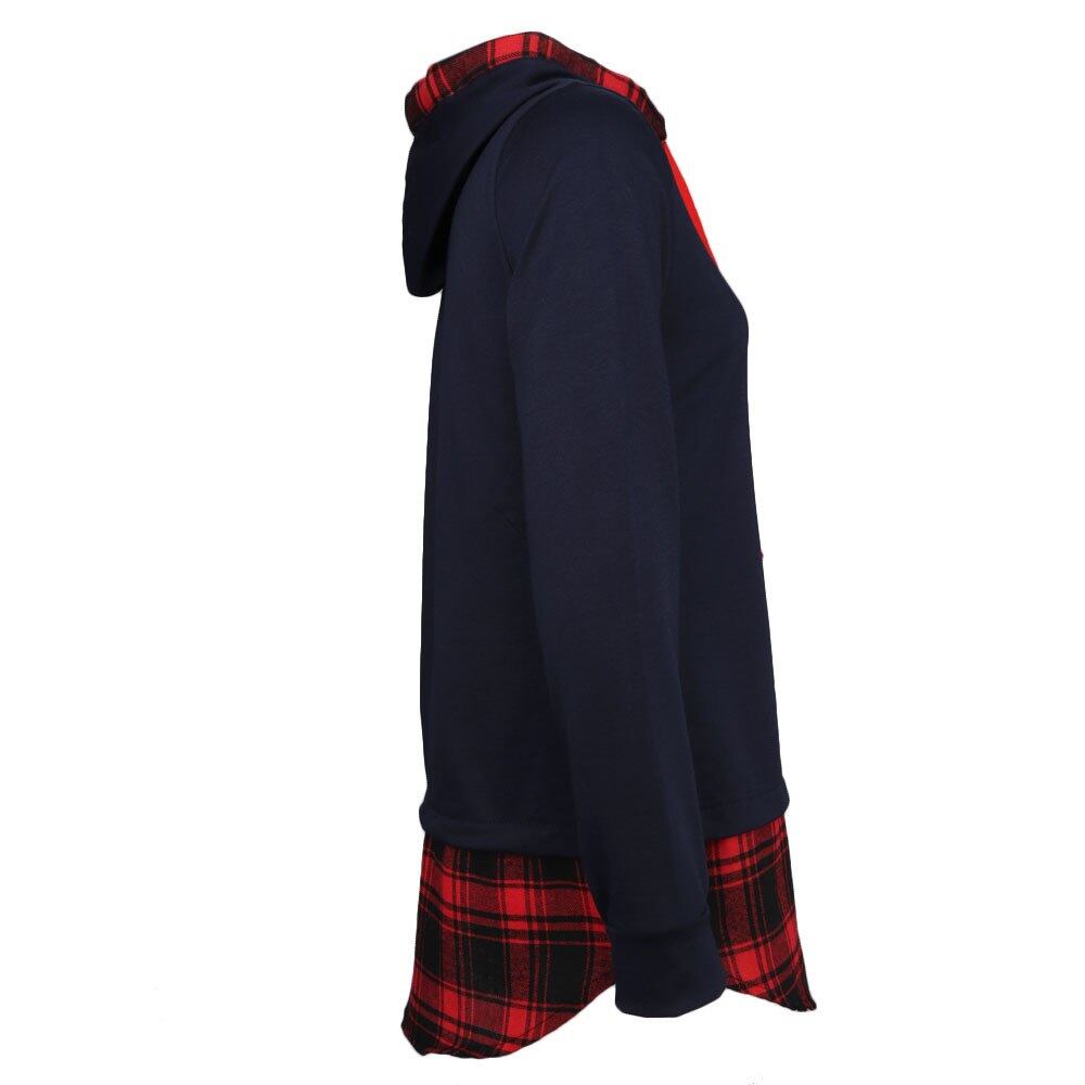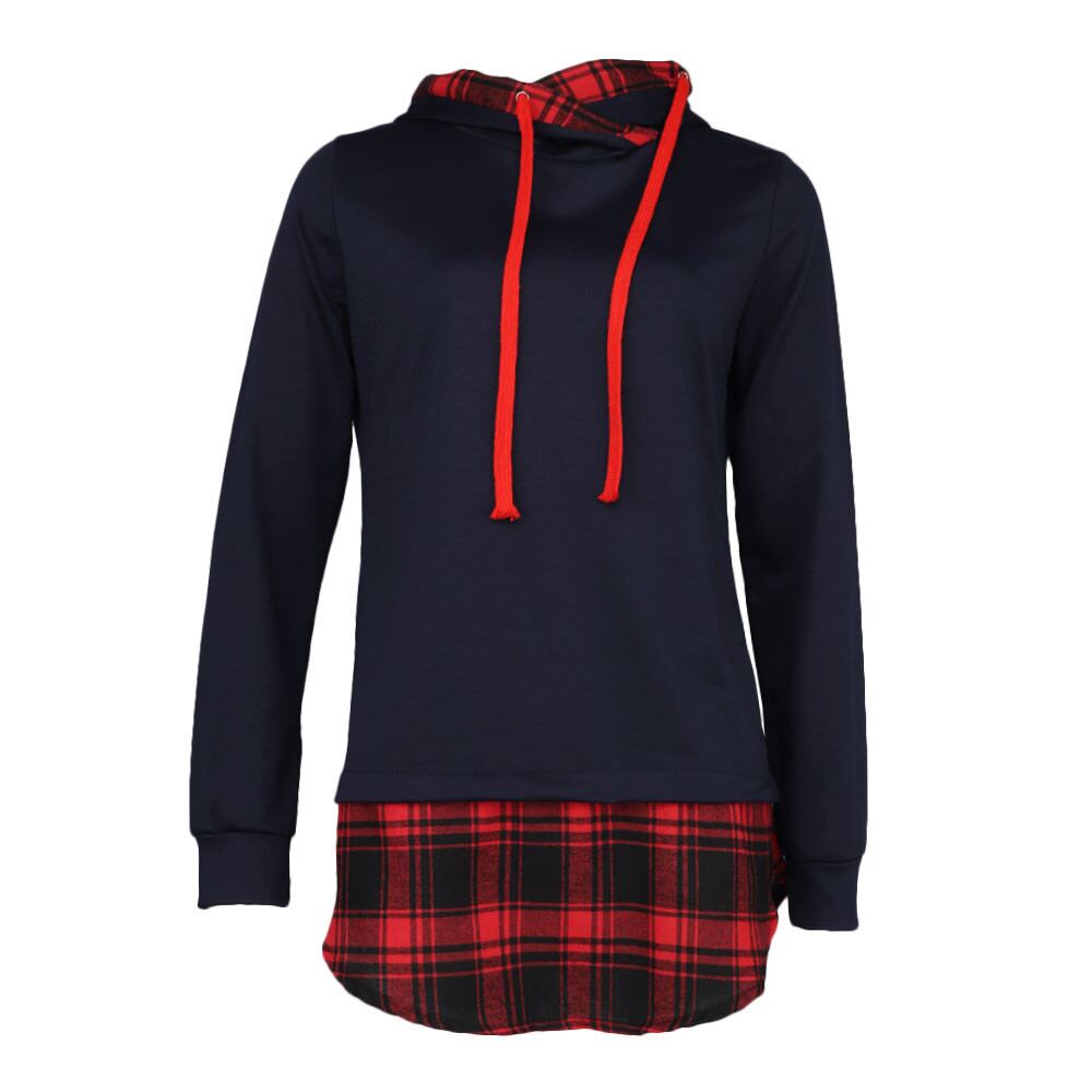 女性パーカー女性のカジュアルパーカースウェット Mujer チェック柄長袖プルオーバースウェットシャツ JULY18