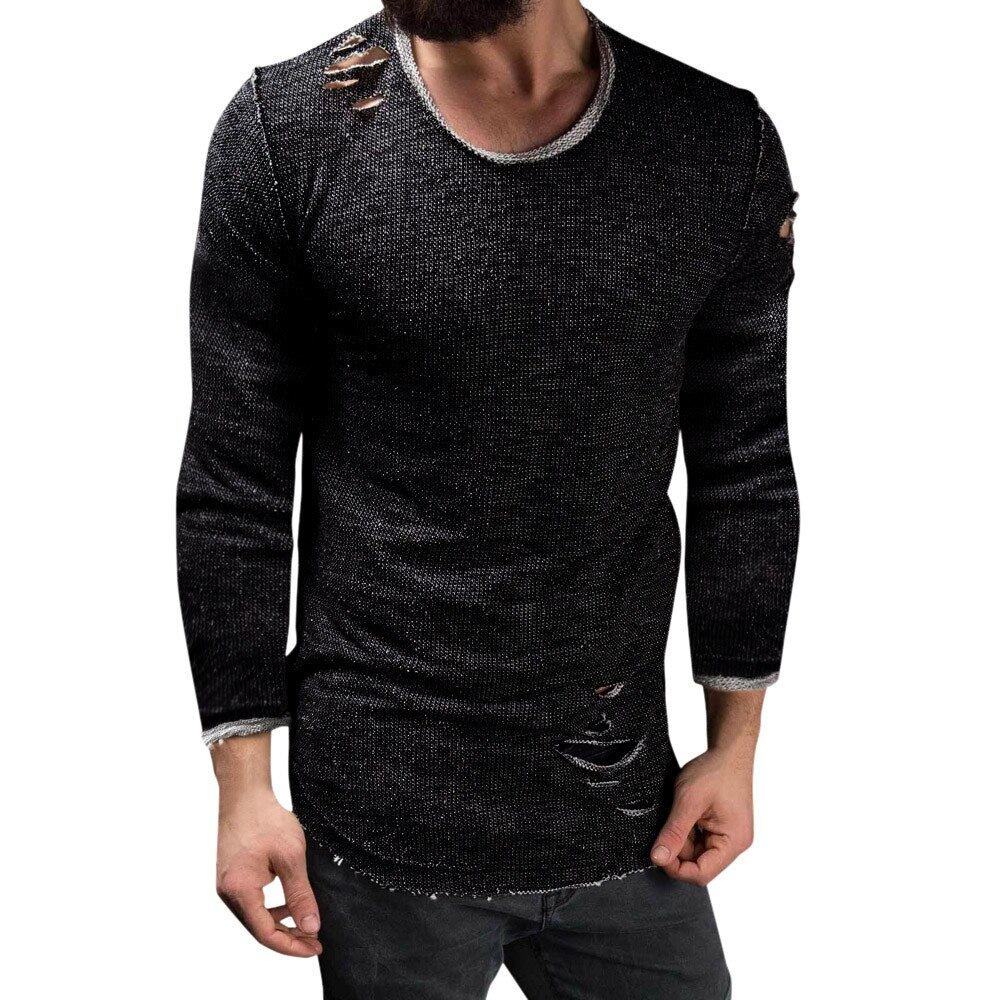 Tシャツ男性のファッション穴スリムフィット O ネック長袖筋肉 Tシャツ Tシャツ秋冬メンズカジュアル oct7 トップス