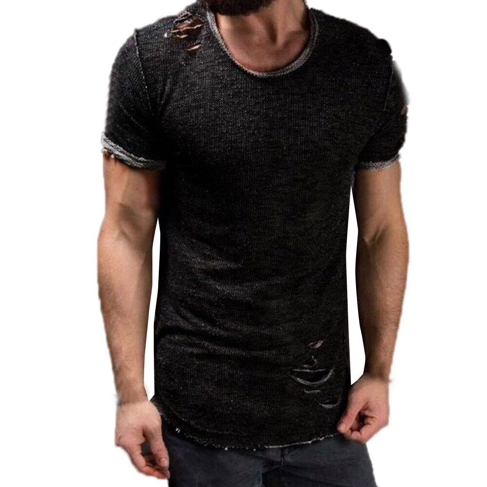 Tシャツ男性のファッション穴ラウンド襟 Tシャツシャツ半袖 Tシャツ春夏男性カジュアルスポーツトップス oct7