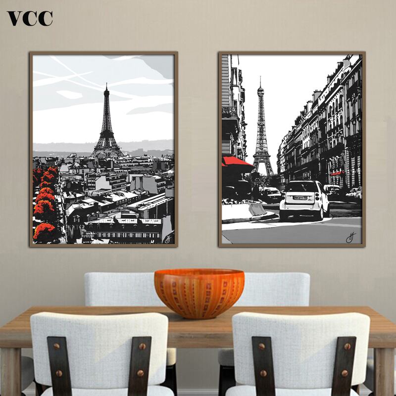 Vcc壁アートキャンバス絵画、壁の写真をロールcuadros装飾都市建物エッフェル塔のパリ、家の装飾