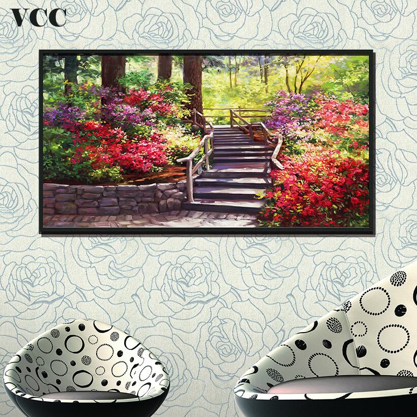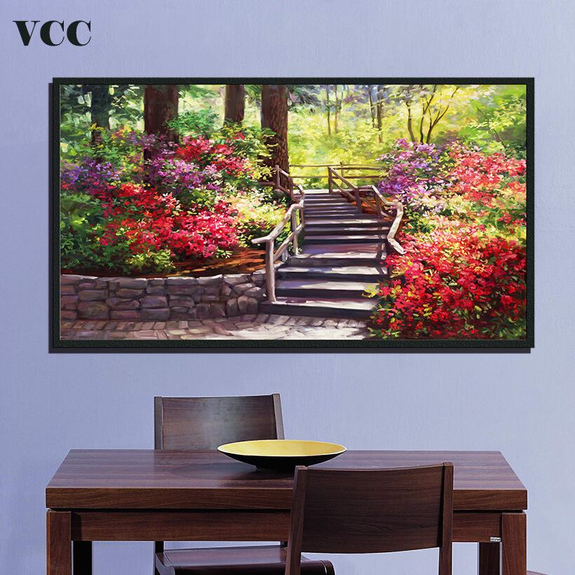 Vccガーデン石段花画像、壁アートキャンバス絵画、絵画に壁、壁写真用リビングルーム、家の装飾