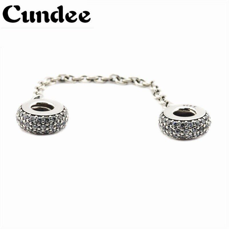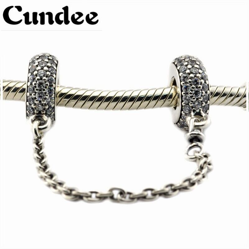 パンドラブレスレットdiyジュエリー秋オリジナル925スターリングシルバーパヴェインスピレーション安全チェーンクリアczチャームビーズ。