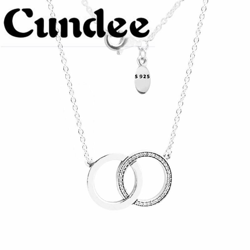 100% 925スターリング-シルバー-ジュエリー署名サークルネックレス付きクリアcz最新ネックレス用女性45センチ