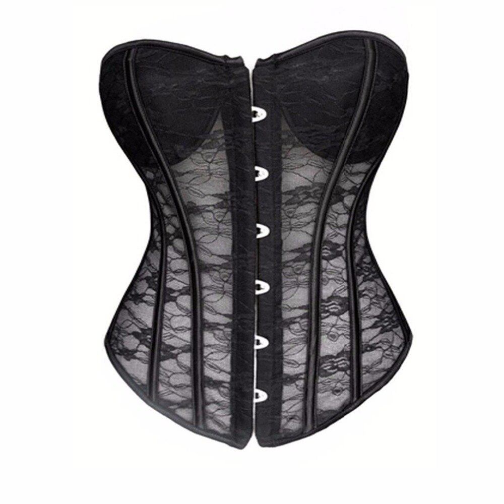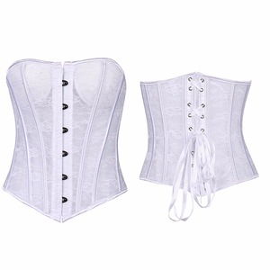 Sapubonvaストラップレスコルセットトップスブラックホワイトメッシュレースコルセットビスチェスパイラルスチール骨を抜かoverbustコルセットゴシックブロケードコルセットセクシー