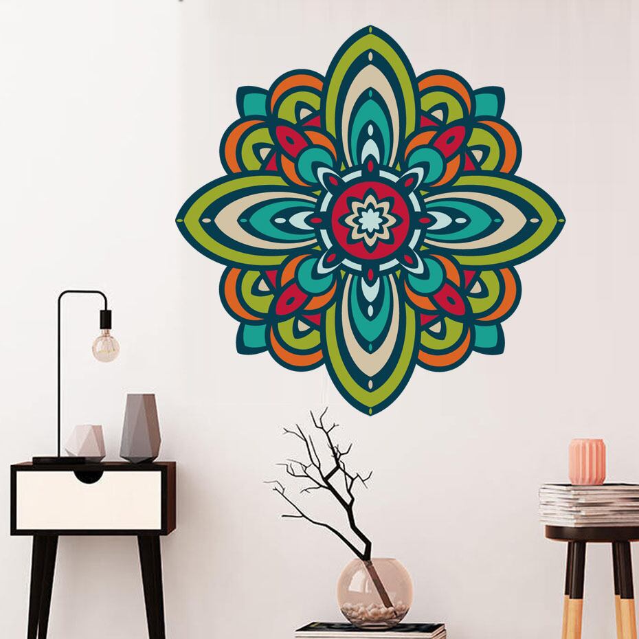 曼荼羅壁ステッカーインドヨガom om記号デカール取り外し可能なビニールアートデカール用キッズ寝室モダンデザインホームデコレーション