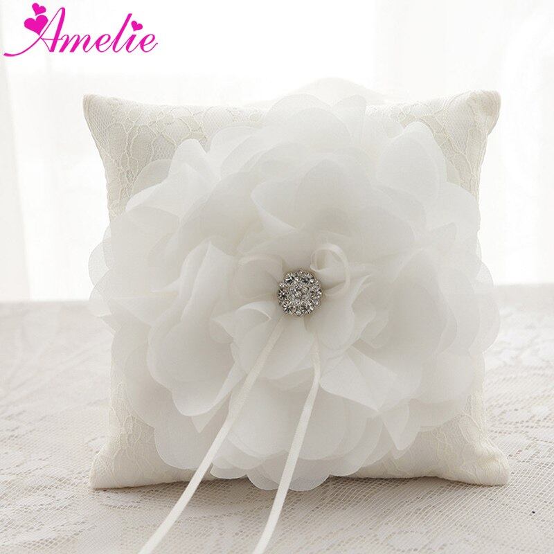 送料無料ビッグフラワーデコレーション結婚式綿リング枕ラインストーンブライダルユニークなリングベアラーピローアイデア