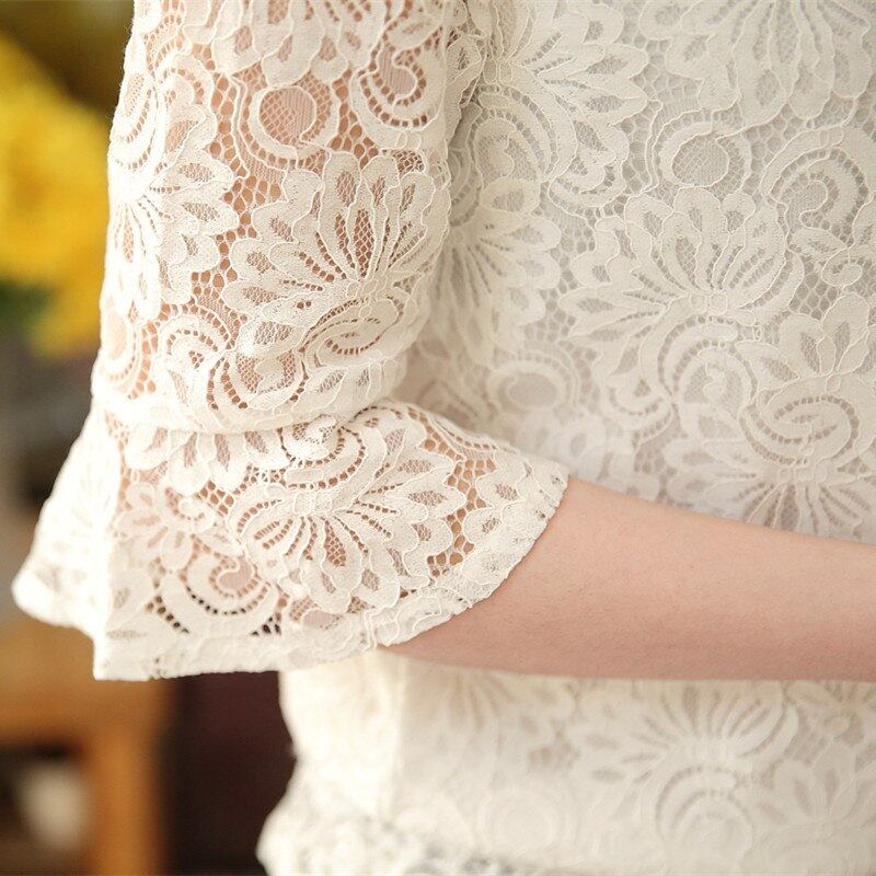 夏緩い女性のシャツピュアカラーv襟フック花中空ステッチレースブラウス0869