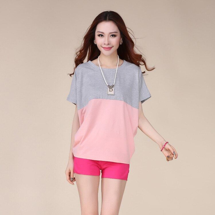 夏新しい韓国バージョンプラスサイズ女性短いバットウィングスリーブtシャツルーズカジュアルパッチワークステッチカラートップス0578