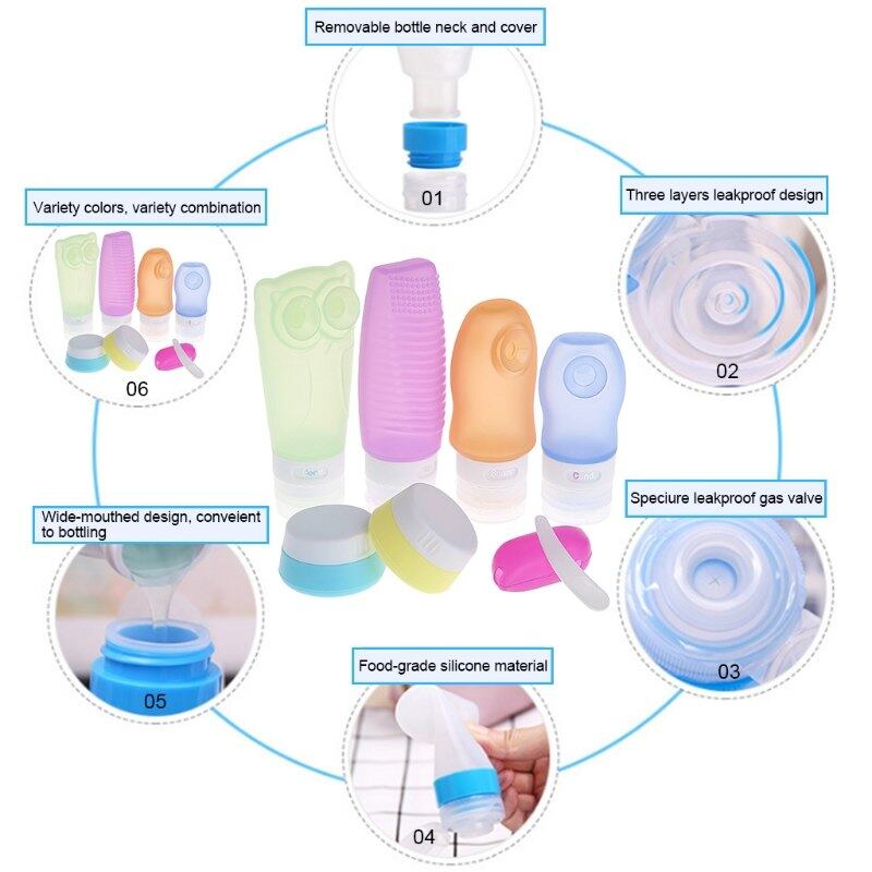 旅行ボトルセットbpaフリーtsa承認された詰め替え柔らかいシリコーンコンテナ新