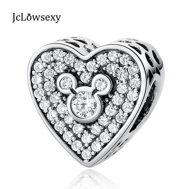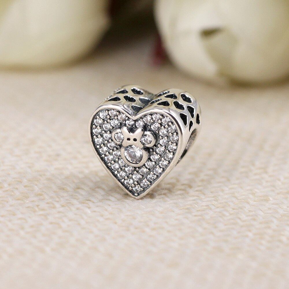 925 スターリングシルバービーズ古典的な漫画ハートクリスタル弓マウスチャームフィットオリジナルパンドラブレスレット Diy の魅力のジュエリー
